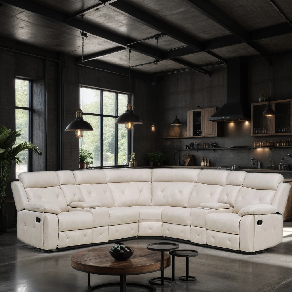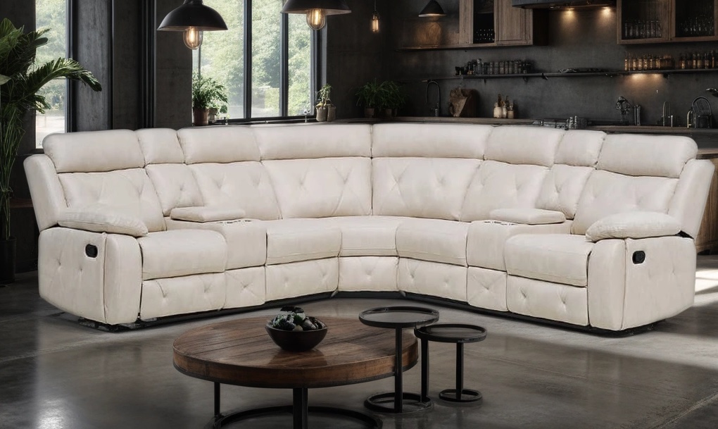 "Merilin" kampinė sofa su atlošiamais krėslais - tai šiuolaikinis stilius, kuriame dera didžiausias komfortas. Sofa pasižymi ryškiomis ryškiomis siūlėmis ir pūkuotomis susegamomis nugaros pagalvėlėmis, kurios suteikia puikią atramą jūsų nugarai sėdint. Šviesiai rudos spalvos dirbtinės odos apmušalai yra kokybiški ir patvarūs. Išorinės sofos sėdynės turi atsilenkimo funkciją. Sudaryta iš trijų modulių. Tvirtas, metalinis atraminis rėmas. Fiksuotos atlošo ir sėdynių pagalvėlės. Sofos turinys: aukštos kokybės poliuretano didelio atsparumo putų pagalvėlės. Odos apmušalai. Keturi puodelių laikikliai ir dvi paslėptos daiktadėžės centrinėje konsolėje.