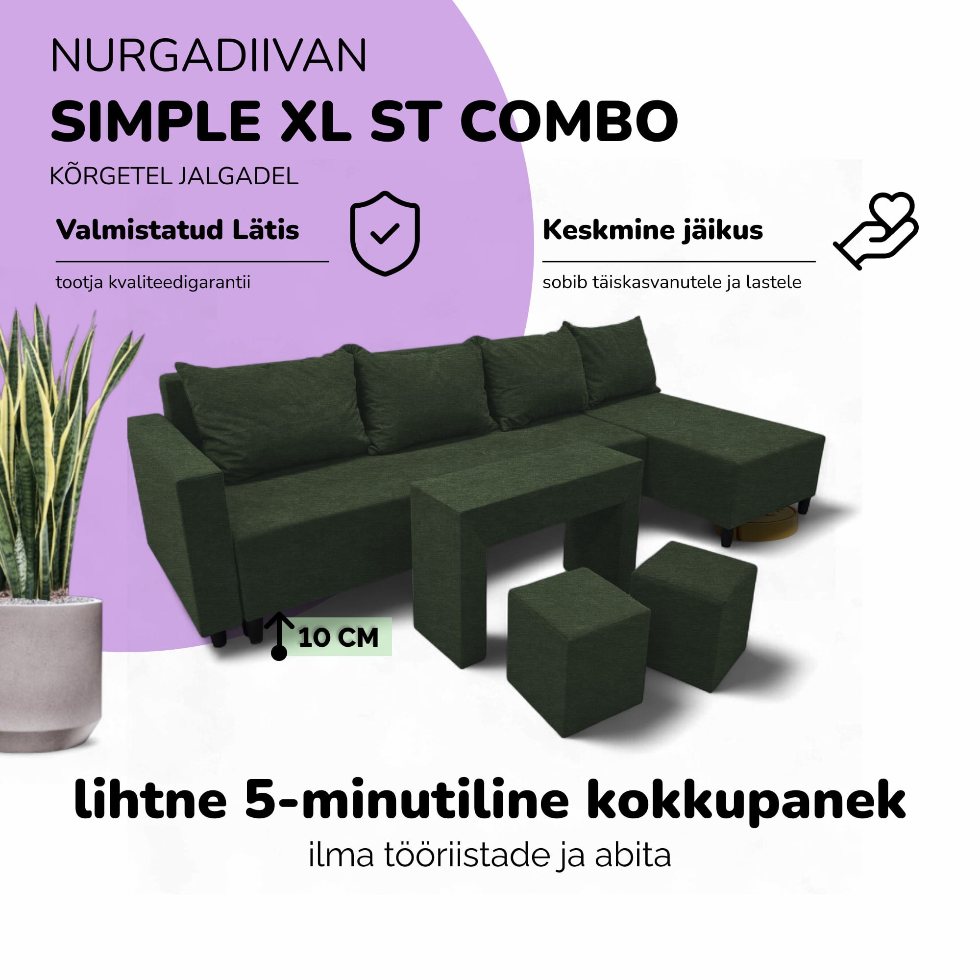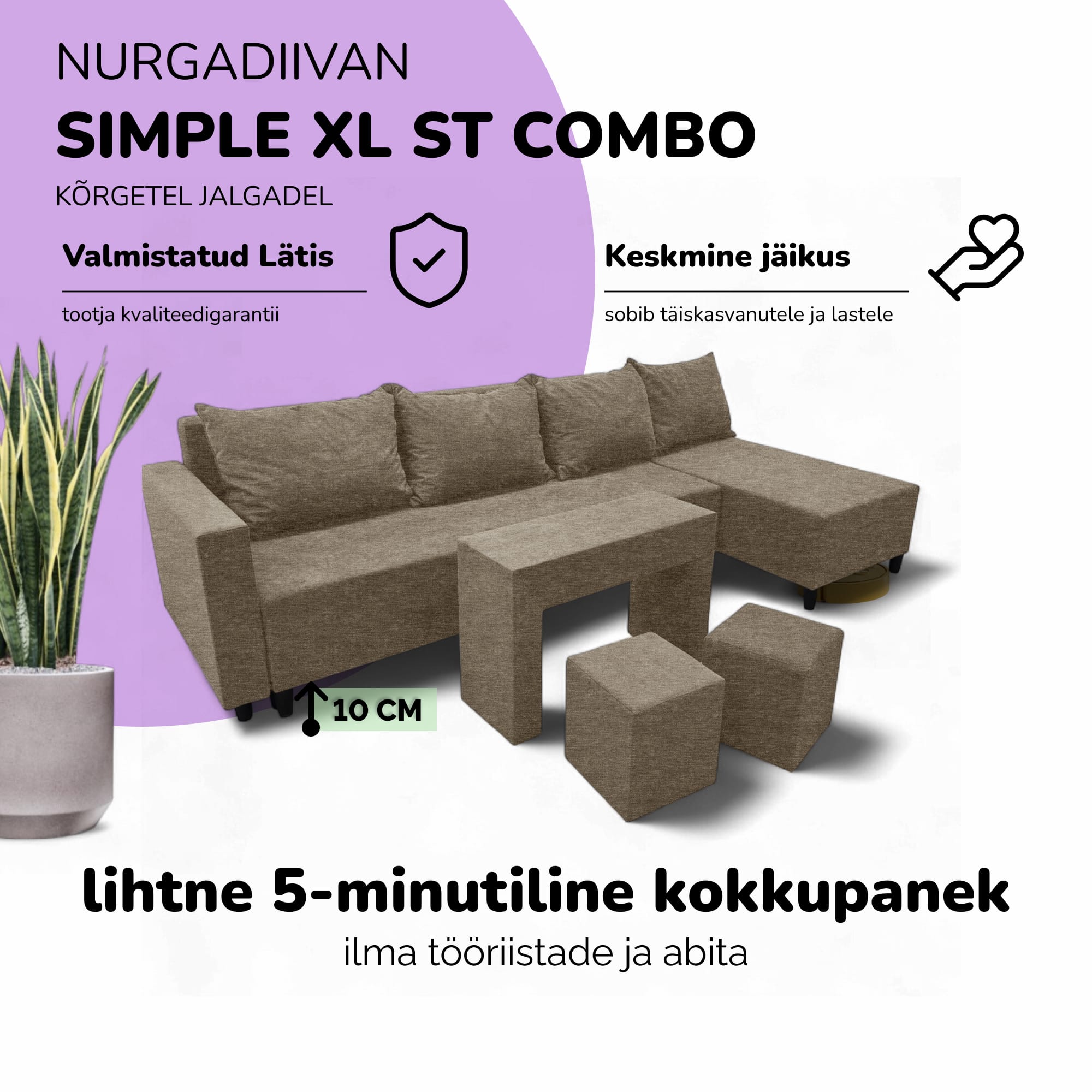 DIDELĖ KAMPINĖ SOFA-LOVA SU STALU IR STALTIESE XL ST COMBO